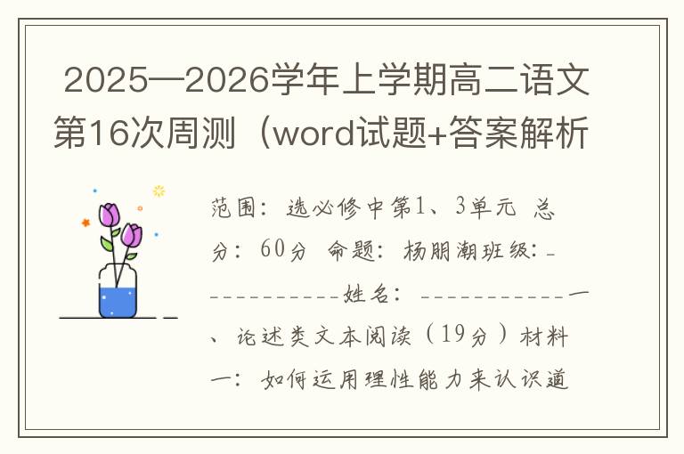 2025-2026学年上学期高二语文第3次周测(word试题+答案解析)09-19
