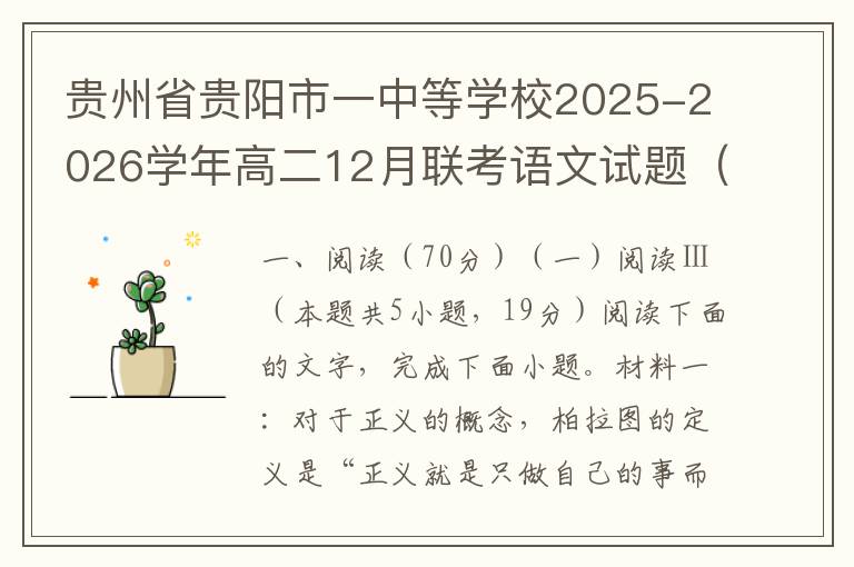 贵州省贵阳市一中等学校2025-2026学年高二12月联考语文试题(word试题+答案解析)