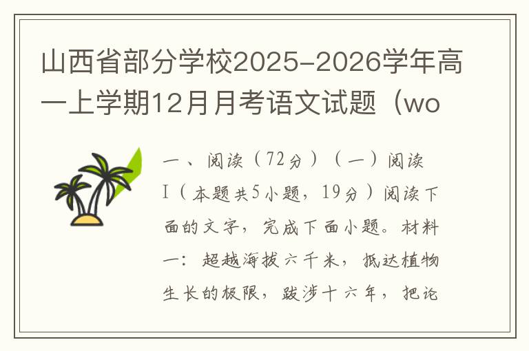 山西省部分学校2025-2026学年高一上学期12月月考语文试题(word试题+答案解析)