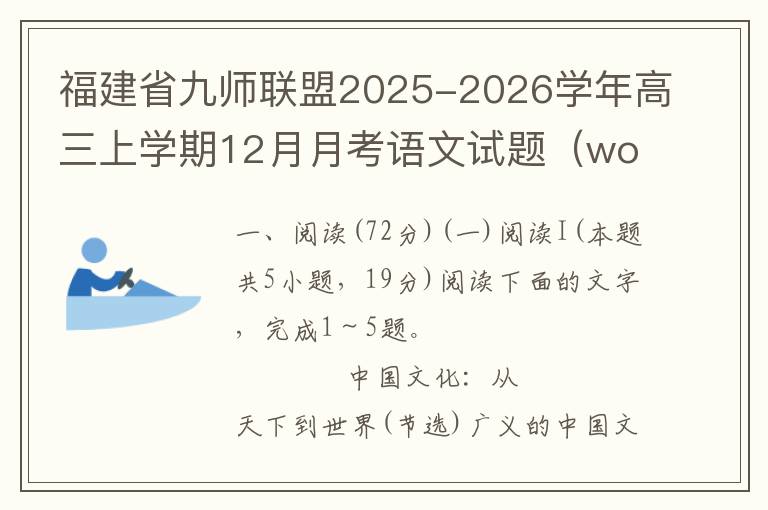 福建省九师联盟2025-2026学年高三上学期12月月考语文试题(word试题+答案解析)