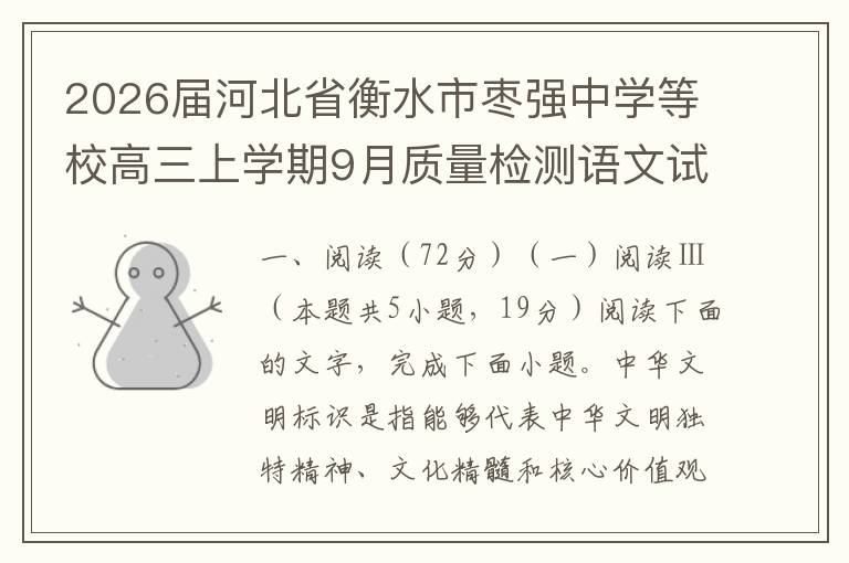 2026届安徽省皖南八校高三第一次大联考语文试卷(word试题+答案解析)