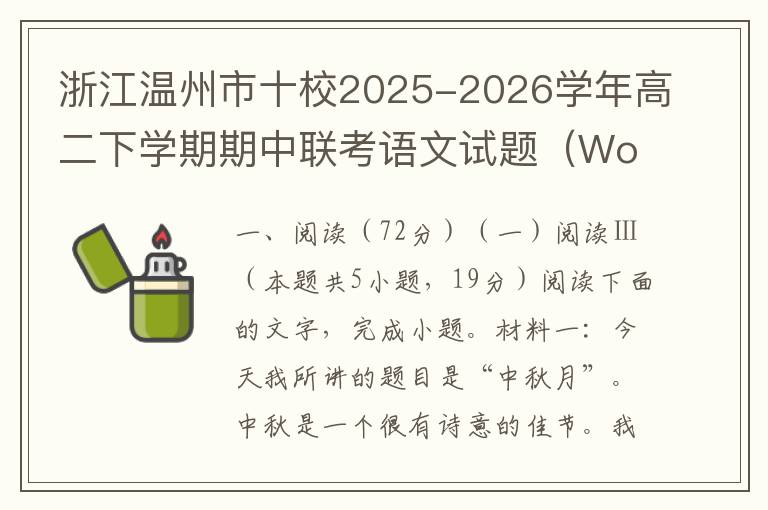 2022-2023学年度第二学期期中高一语文考试卷(Word试题+答案详解)04-27