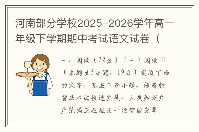 一、现代文阅读(35分) (一)现代文阅读I(本题共5小题,19分)阅读下面的文字,完成1~5题。材料一:我认为《红楼梦》是康、雍、乾三朝的社会生活、社会矛盾、历史趋向的一个艺术的总概