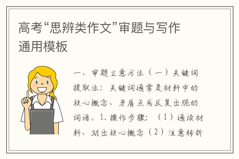 高考之所以格外注重思辨能力的考察,源于选拔人才的需求。当今社会需要具备理性思维的现代公民,他们能避免情绪化、偏激和片面地看待问题。在面对复杂的社会现象和多元的观点时,能够从多个角度、全面且辩证地分析,权衡利弊,从而得出更为客观理性的结论。一元思辨作文恰好为检测考生的这种思维能力提供了有效途径,引导考生在对单一核心概念的深入探究中,展现思维的广度与深度,满足时代对人才培养的要求,助力选拔出真正具有理性思维和综合素养的优秀学子。