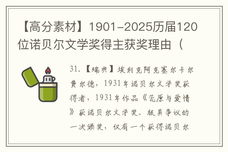 【高分素材】1901-2025历届120位诺贝尔文学奖得主获奖理由(1-30)