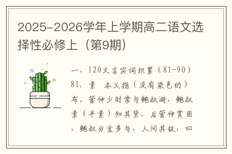 2025-2026学年上学期高二语文选择性必修上(第8期)