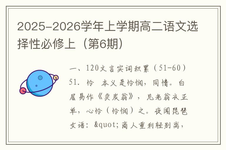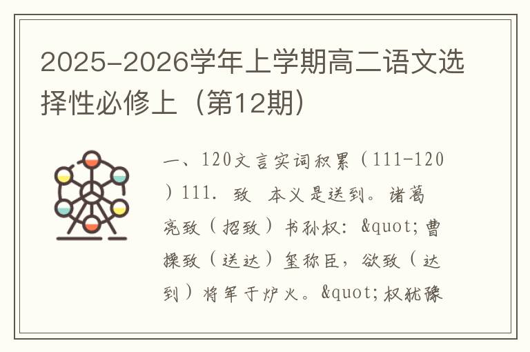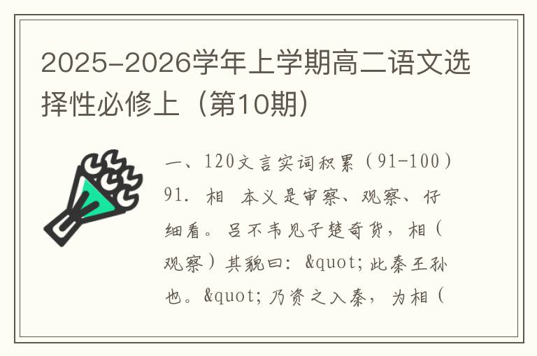 2025-2026学年上学期高二语文选择性必修上(第11期)