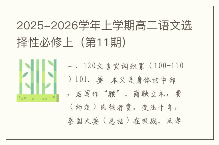 2025-2026学年上学期高二语文选择性必修上(第12期)