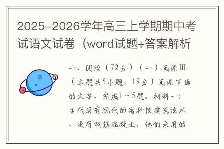 2025-2026学年高三上学期期中考试语文试卷(word试题+答案解析)