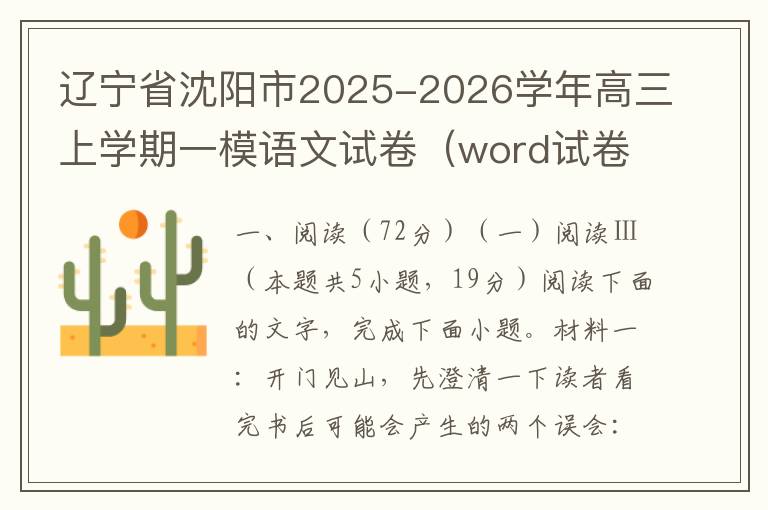 辽宁省沈阳市2025-2026学年高三上学期一模语文试卷(word试卷+答案解析)