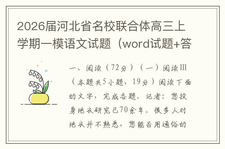 2026届河北省名校联合体高三上学期一模语文试题(word试题+答案解析)