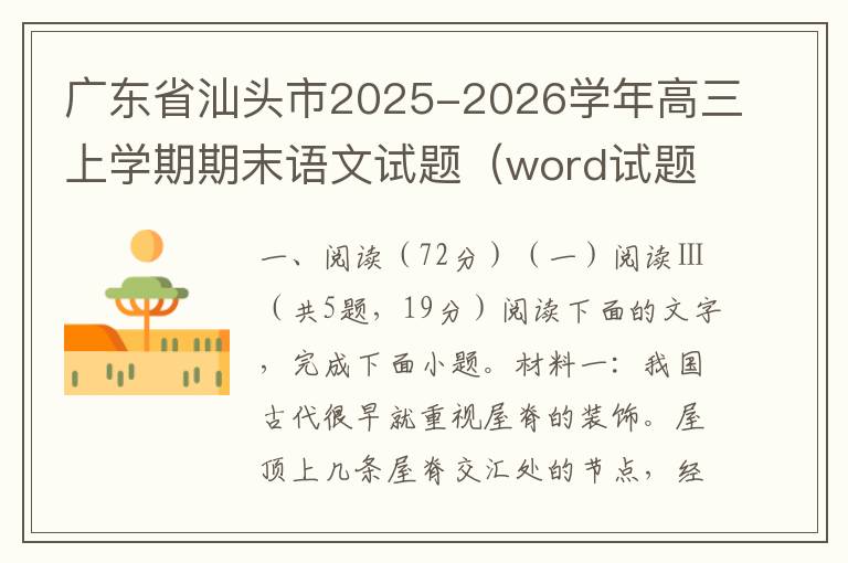 广东省汕头市2025-2026学年高三上学期期末语文试题(word试题+答案解析)