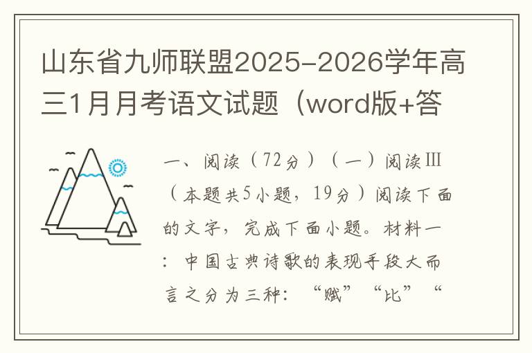 山东省九师联盟2025-2026学年高三1月月考语文试题(word版+答案解析)
