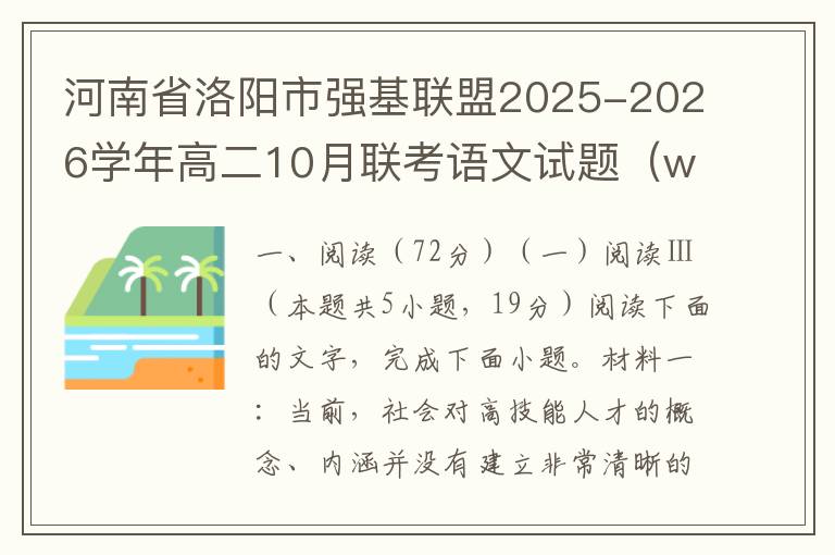 河南省洛阳市强基联盟2025-2026学年高二10月联考语文试题(word试题+答案解析)
