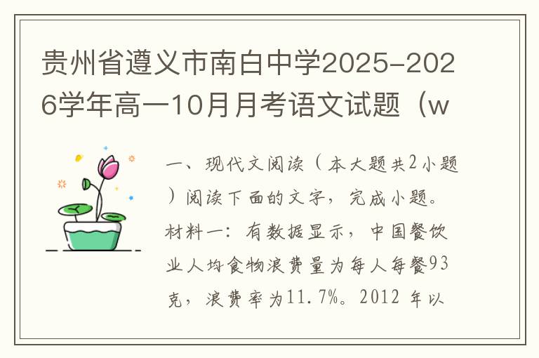 贵州省遵义市南白中学2025-2026学年高一10月月考语文试题(word试题+答案解析)