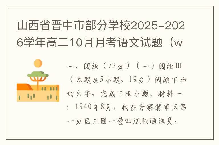 山西省晋中市部分学校2025-2026学年高二10月月考语文试题(word试题+答案解析)