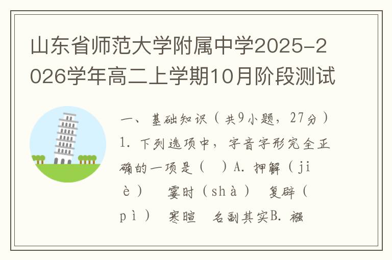 山东省师范大学附属中学2025-2026学年高二上学期10月阶段测试语文试题(word试卷+答案解析)