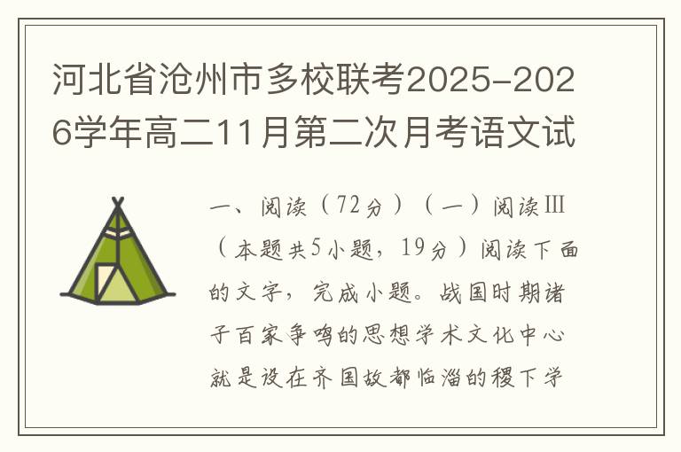 河北省沧州市多校联考2025-2026学年高二11月第二次月考语文试题(word试题+答案解析)