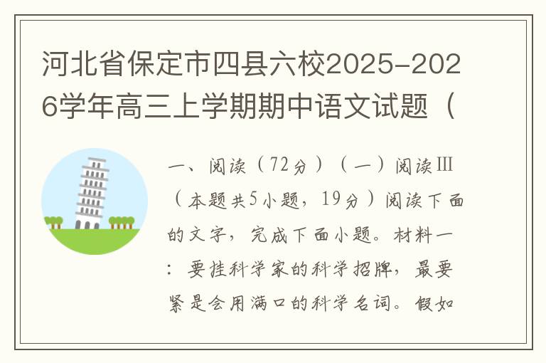 河北省保定市四县六校2025-2026学年高三上学期期中语文试题(word试题+答案解析)