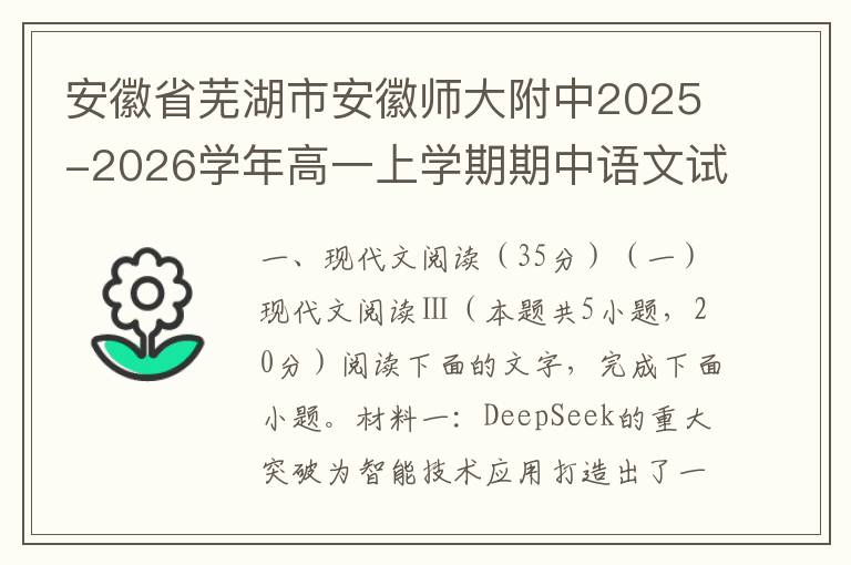 安徽省芜湖市安徽师大附中2025-2026学年高一上学期期中语文试题(word试题+答案解析)