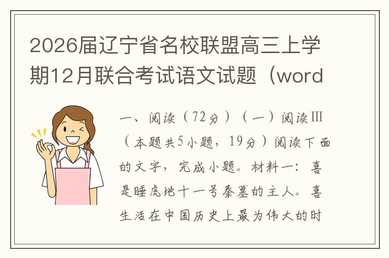 2026届辽宁省名校联盟高三上学期12月联合考试语文试题(word试题+答案解析)