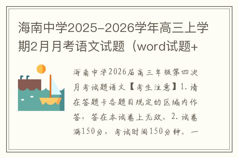 海南中学2025-2026学年高三上学期2月月考语文试题(word试题+答案解析)