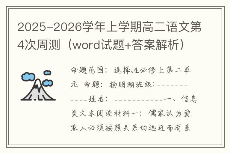 2025-2026学年上学期高二语文第4次周测(word试题+答案解析)