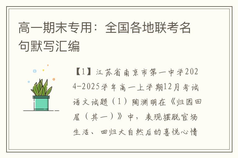 【1】江苏省南京市第一中学2024-2025学年高一上学期12月考试语文试题