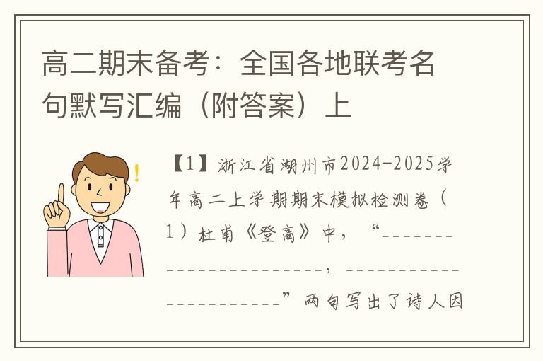 高二期末备考:全国各地联考名句默写汇编(附答案)上